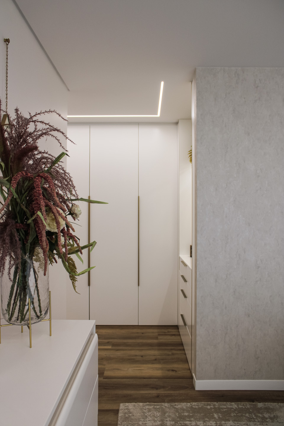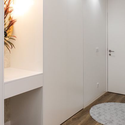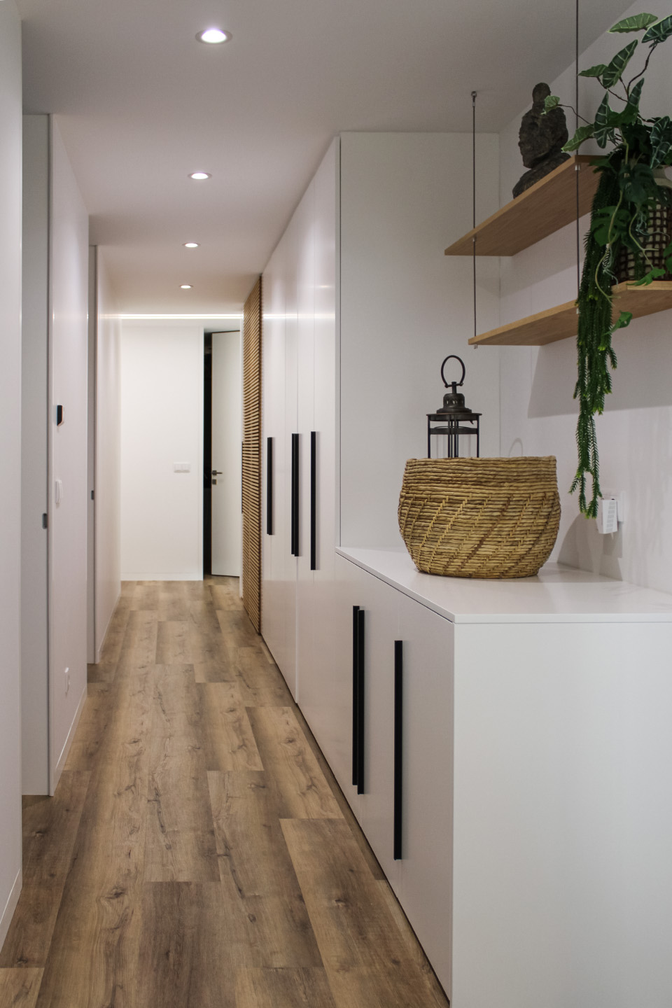 Logement avec menuiserie laquée, panneaux fraisés et portes à lames en chêne