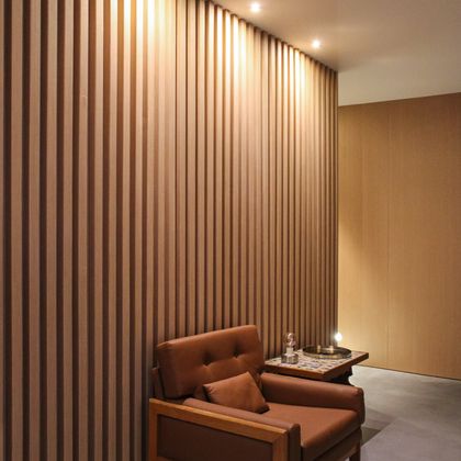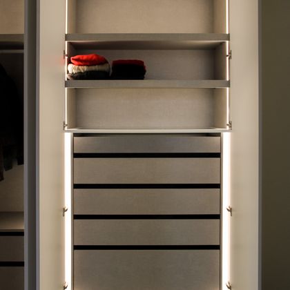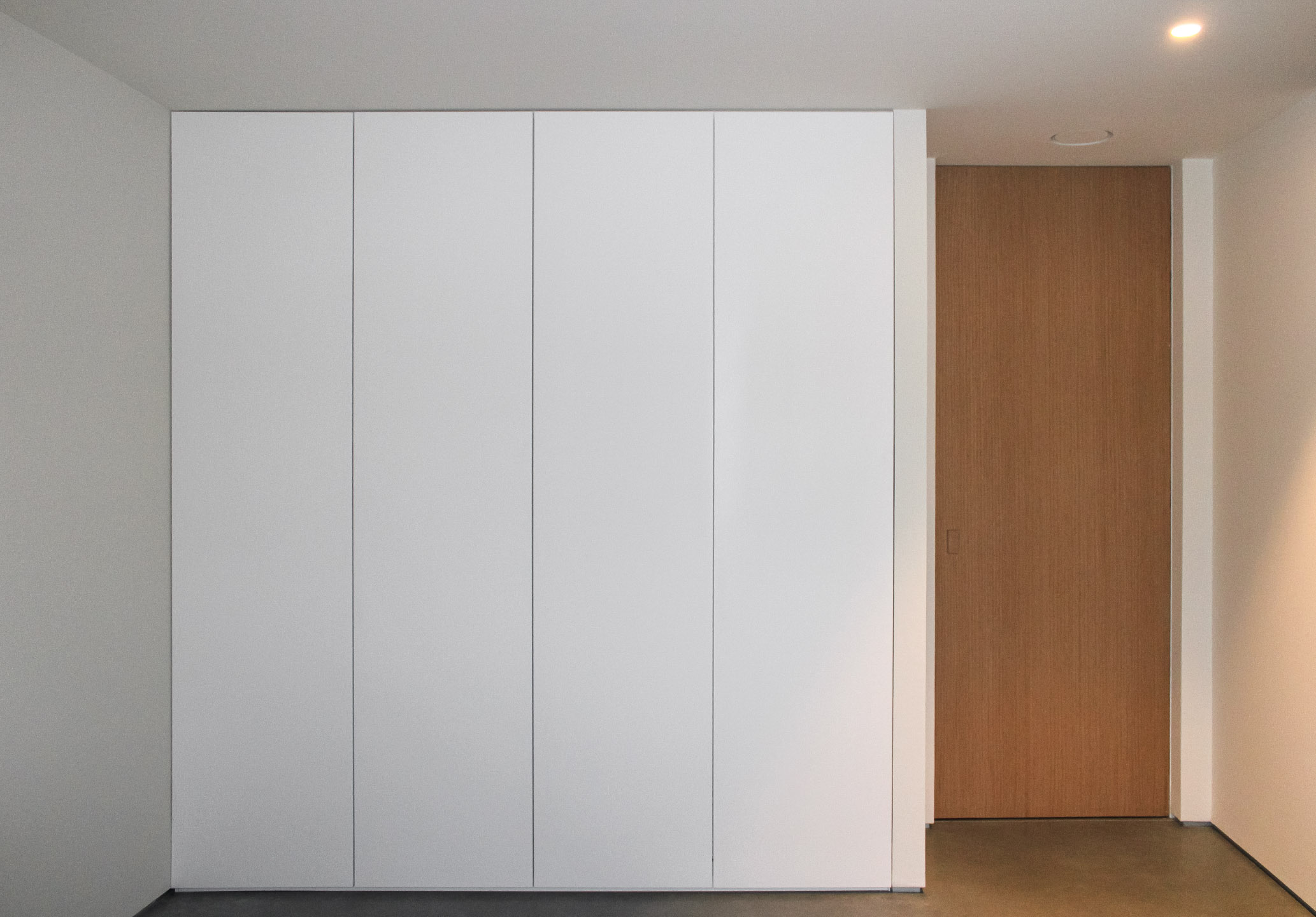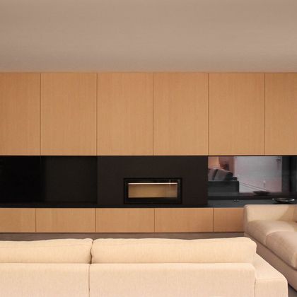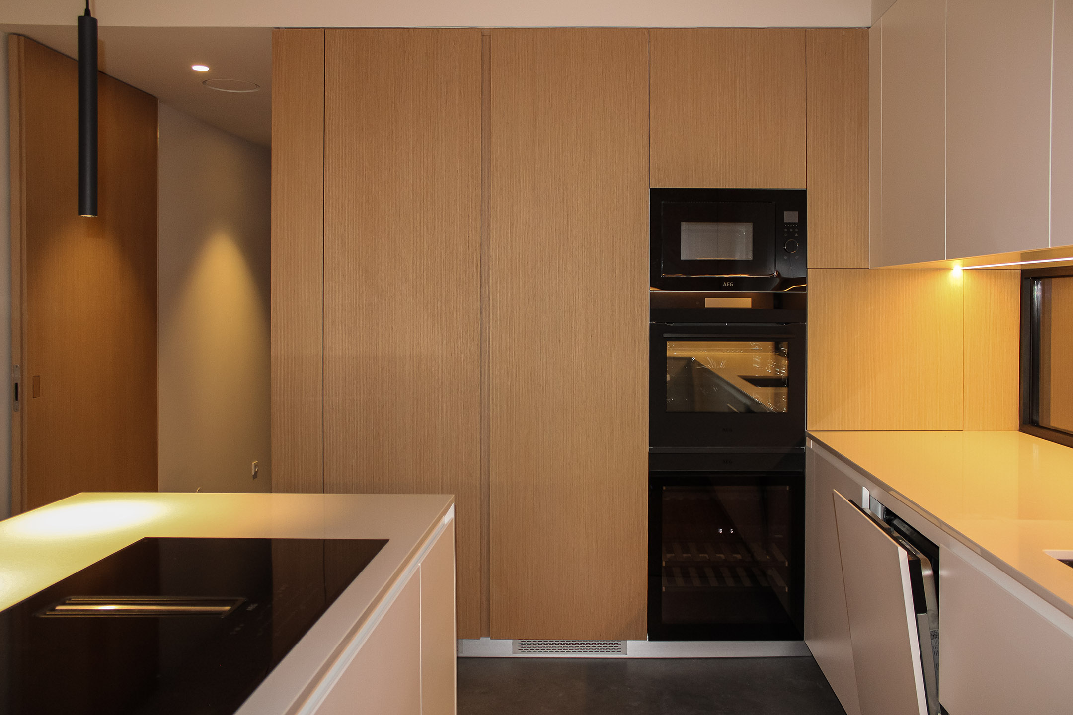Logement avec cuisine et menuiserie en laqué et plaqué chêne