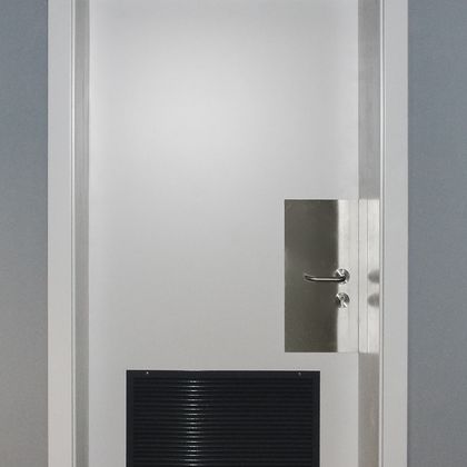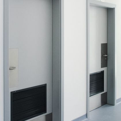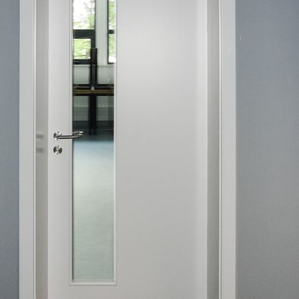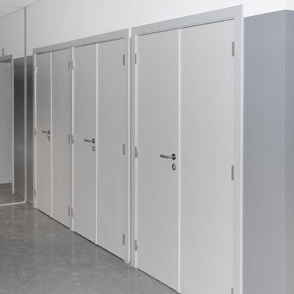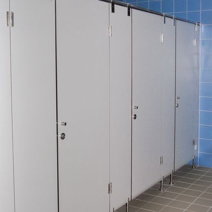 Ecole avec séparations bordées de placage de bois et douche en phénoliques