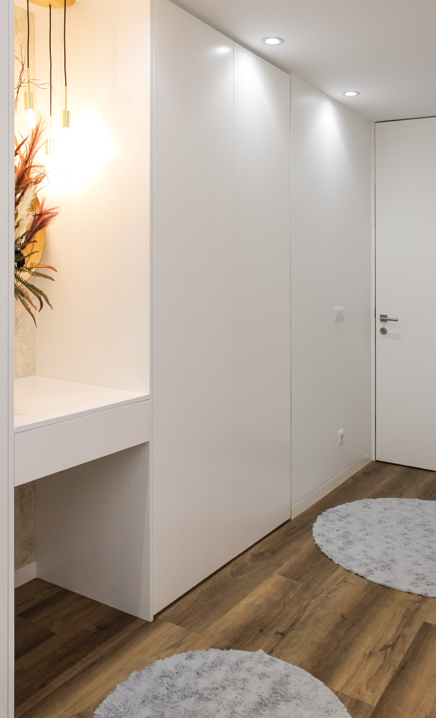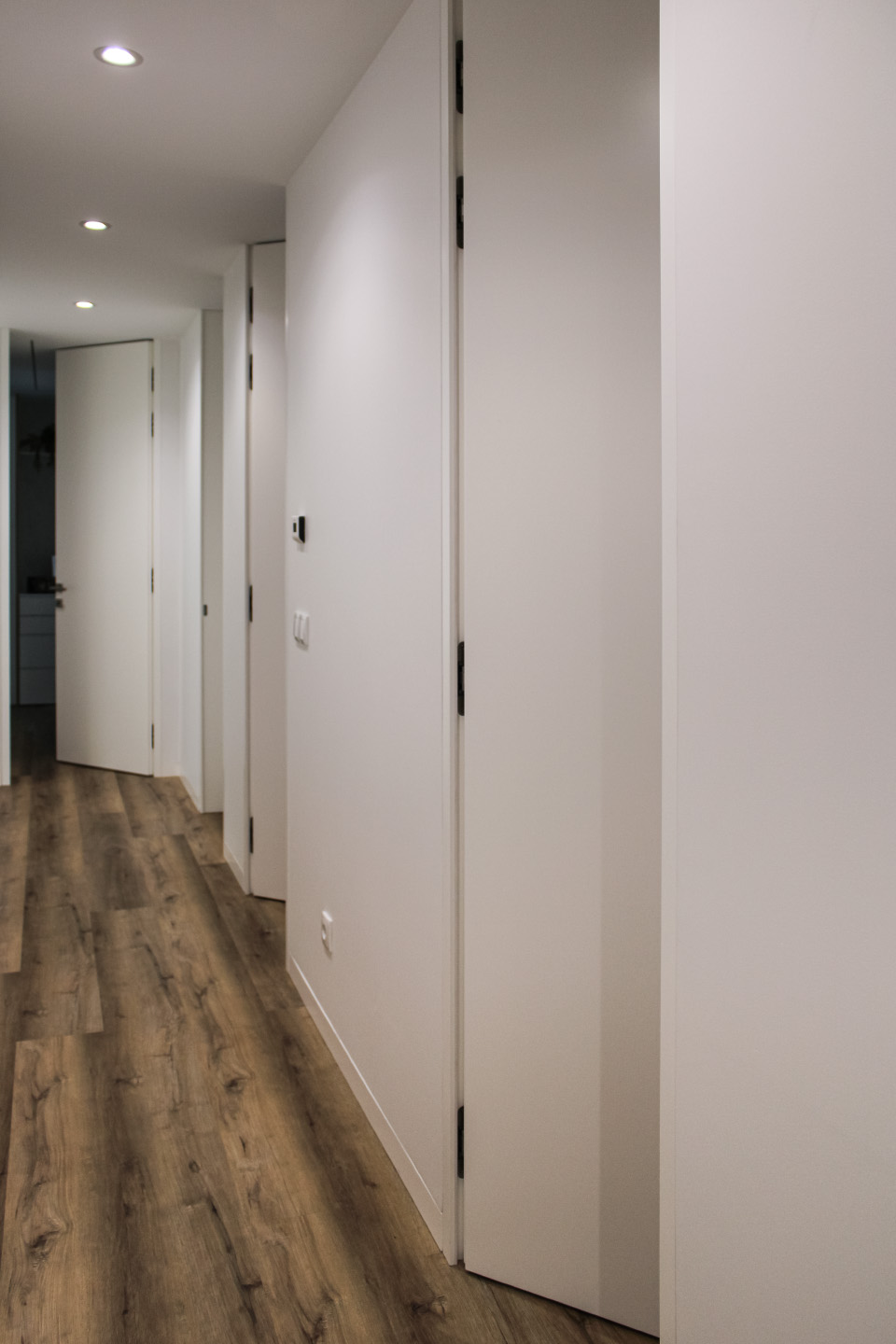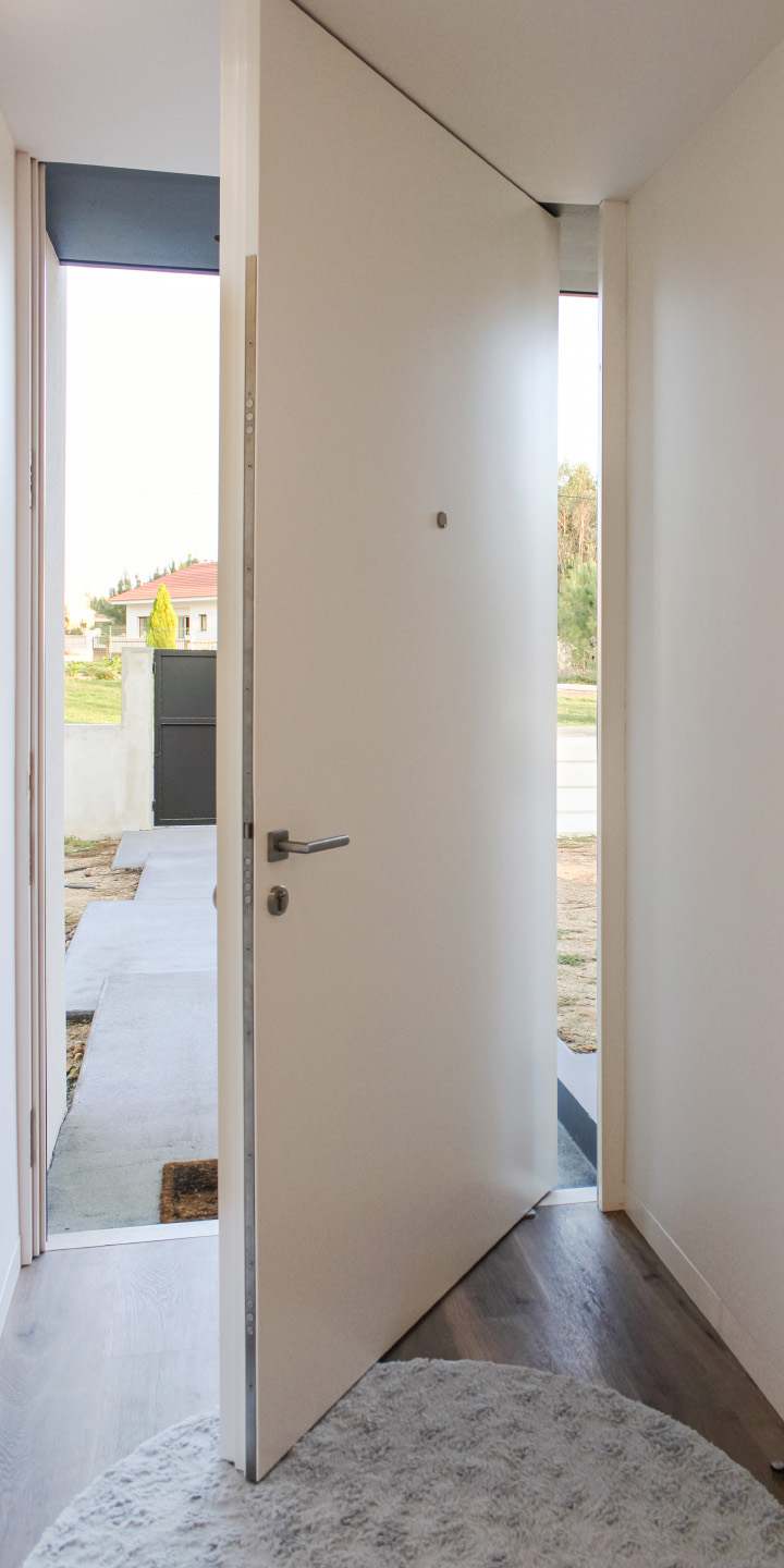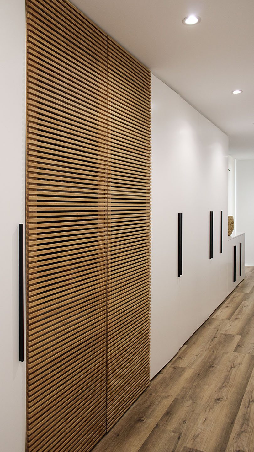 Moradia com carpintaria em lacado, painéis fresados e portas em ripado de carvalho