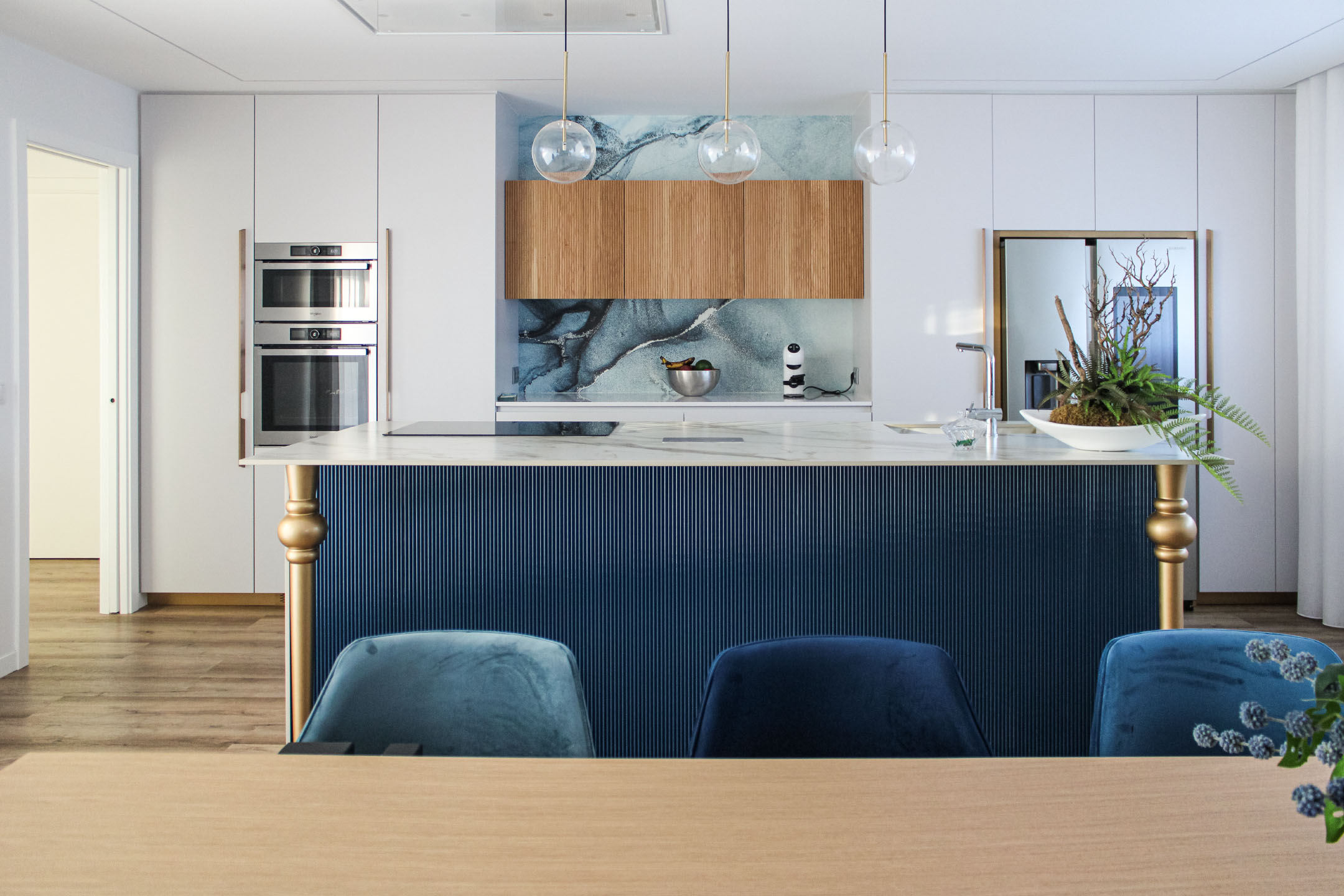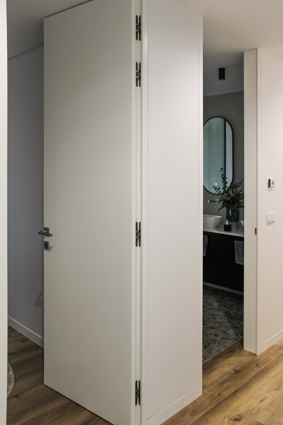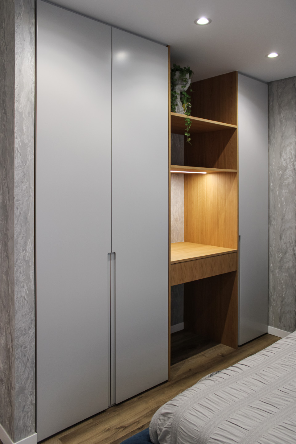 Moradia com carpintaria em lacado, painéis fresados e portas em ripado de carvalho