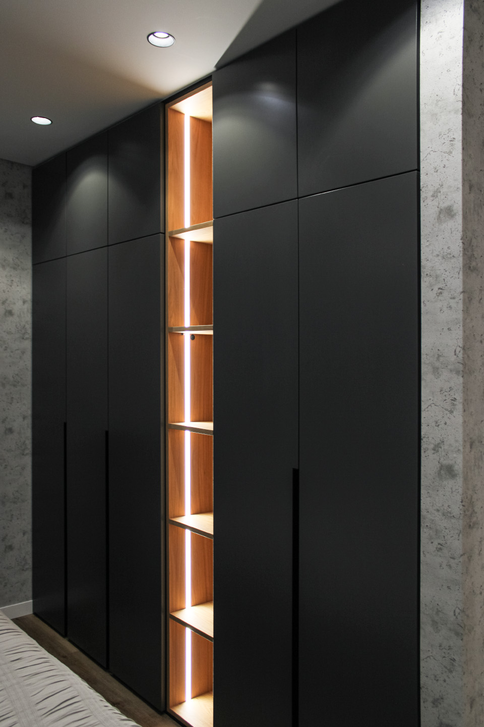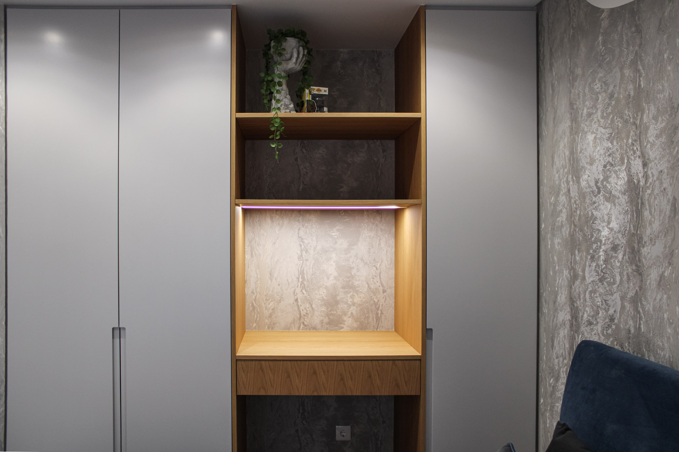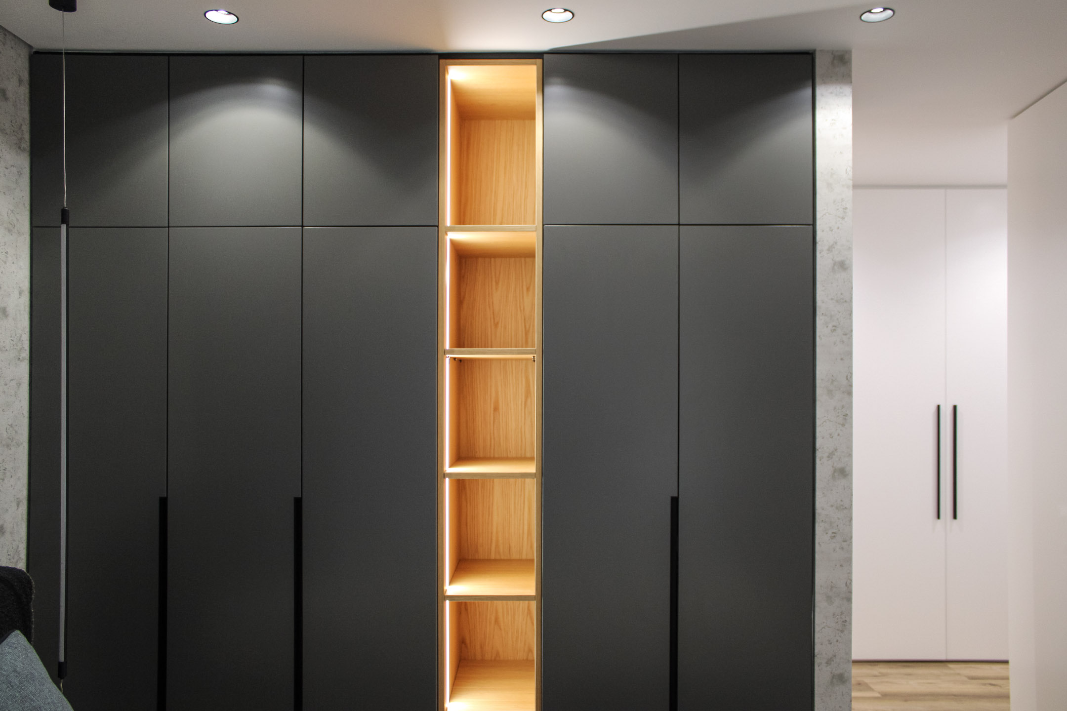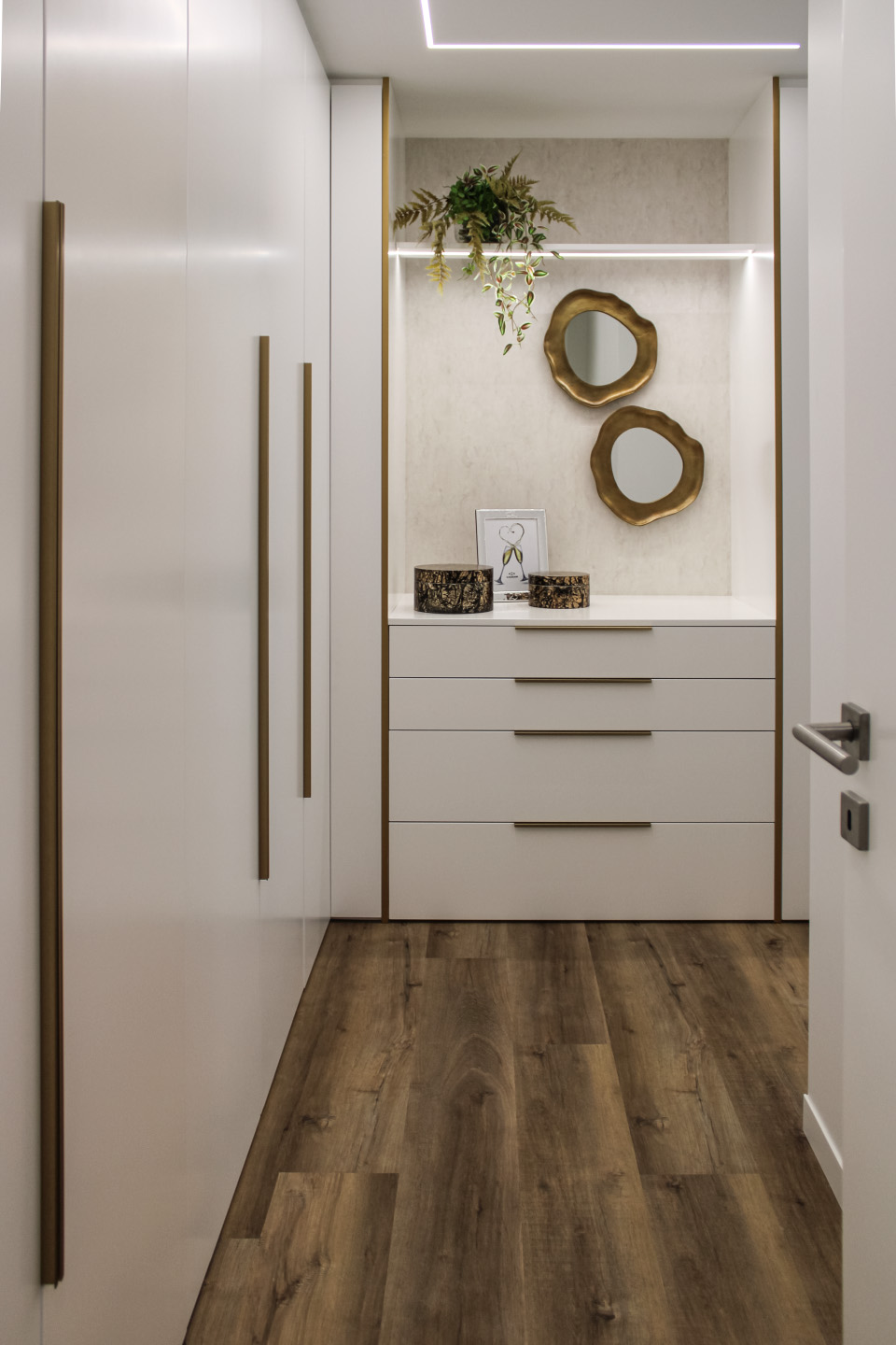 Moradia com carpintaria em lacado, painéis fresados e portas em ripado de carvalho